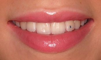 The crystals have a special coating on the back and their face reflects the light and makes it sparkle like a diamond. The procedure is painless, no drilling or holes, no damage to the tooth, quickly done, a little bit of composite material will bond the crystal onto the teeth and can last as long as you want.