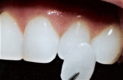 bonded to the front surface of the teeth to correct discolorations, irregular